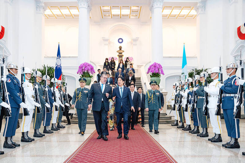 Taiwan and Guatemala yesterday signed two agreements to boost cooperation on semiconductors and establish a new mechanism for political consultations, as President William Lai (賴清德) met with Guatemalan President Bernardo Arevalo at the Presidential Office in Taipei.