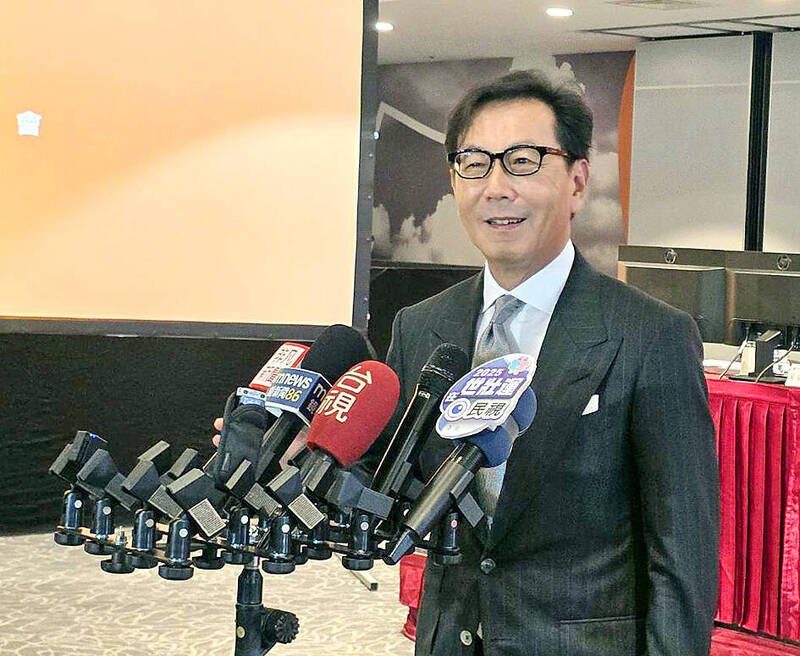 Fubon Financial Holding Co chairman Daniel Tsai attends a news conference in Taipei on Friday last week Photo: CNA
