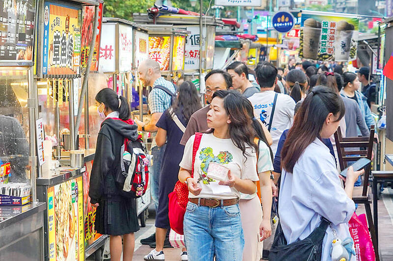 People walk through Ningxia Night Market in Taipei on April 8. Photo: CNA