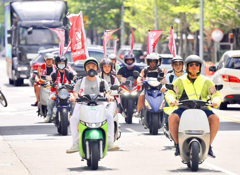 People ride in a motorbike parade in Taipei yesterday in support of a recall campaign against Chinese Nationalist Party (KMT) lawmakers. Photo: CNA