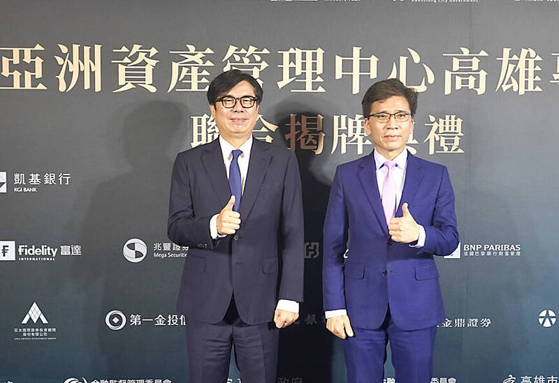 The Financial Supervisory Commission (FSC) and the Kaohsiung City Government yesterday jointly hosted a plaque unveiling ceremony for a trial asset management zone in the city as a symbol of the central government’s push to develop Taiwan into an Asian asset management hub.