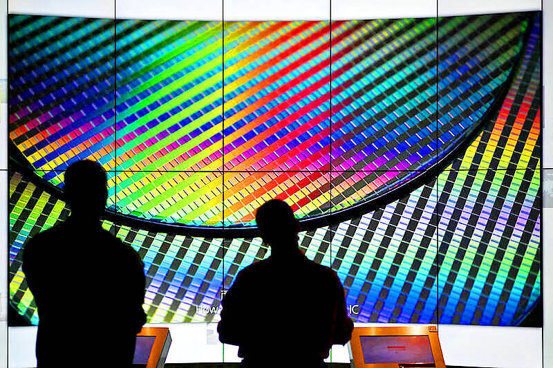 Visitors look at a wafer shown on screens at the Taiwan Semiconductor Manufacturing Co Renovation Museum at the Hsinchu Science Park in an undated photograph. Photo: Sam Yeh, AFP