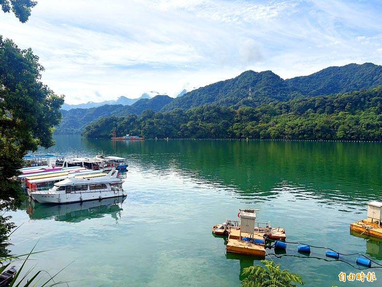 Boats are moored at Shihmen Reservoir in Taoyuan on July 6. Photo: Lee Jung-ping, Taipei Times