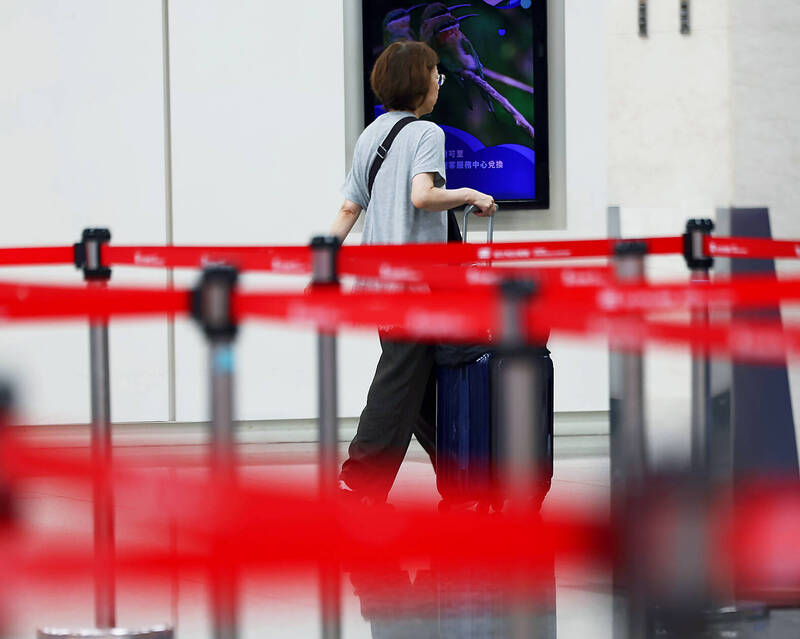 A woman walks past stanchions at Taipei International Airport (Songshan airport) on July 1 last year. Photo: CNA