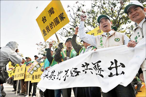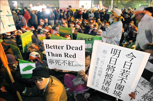 陳雲林第二次來台,綠營民眾於台中中清路對面高舉抗議布條嗆聲。(記者廖耀東攝)