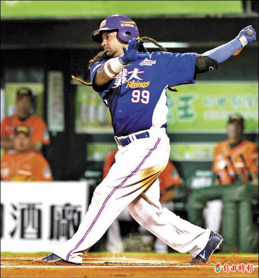 大聯盟生涯轟出五五五支全壘打的曼尼(Manny Ramirez),終於在台灣開轟,昨天曼尼打出加盟義大犀牛第一次單場三安打的猛打賞,包括第一轟、也是中職史上第七千轟,讓台南球場爆滿的一萬兩千名球迷看得如醉如痴。