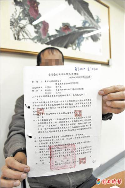 台北地院裁定,本票是由東京通運的陳姓負責人提出,陳主張宋男夫婦九十七年九月二十五日簽下這張本票,到期日九十九年十二月七日,法院認定是有效本票。宋男說,他根本沒欠債,是對方擅自在本票填上數字。