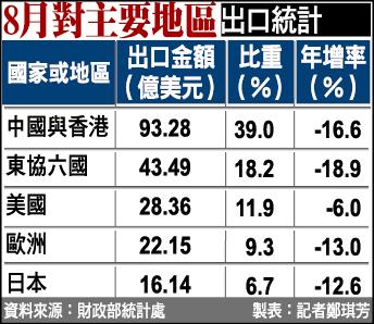 8月對主要地區出口統計