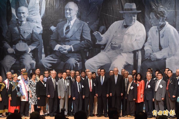 馬英九(中)25日出席慶祝台灣光復七十週年紀念大會致詞。(記者簡榮豐攝)