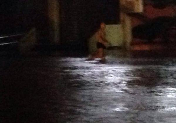 許多輔大學生跑到積水嚴重的中美廣場拍照留念,甚至有人疑穿著泳褲戲水,有學生留言戲稱「重現中美湖,大一就看到了」、「久聞中美湖大名,如今一探真相」、「泳褲哥那張太op了啦」、「一群人不睡覺等放假?」