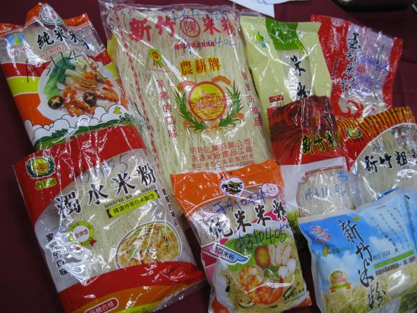 衛福部宣布,7月1日起,米含量百分百的才可稱為「米粉」,圖為消基會去年抽查市售米粉後,公佈米含量與包裝標示不同的9款市售米粉。(資料照,記者謝文華攝)
