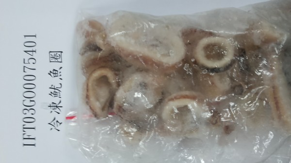 中國出口的「FUJIAN冷凍魷魚圈」被驗出重金屬鎘含量超標,達3.6 ppm。(圖片取自食藥署網站)