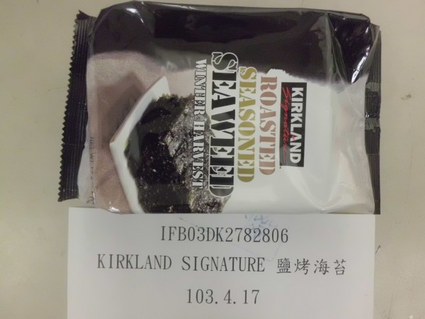 據食藥署檢驗結果指出,台灣無印良品公司自日本靜岡進口「MUJI芬香茶袋茶(李子風味&綠茶)」共2.75公斤,被驗出殘留農藥賽果培1.07 ppm,超過規定的0.10 ppm;高雄好市多公司從南韓進口「KIRKLAND SIGNATUREKIRKLAND SIGNATURE 鹽烤海苔」約1公噸重,依規定此類產品不得使用甜味劑,卻被驗出含甜味劑糖精0.04 g/kg。