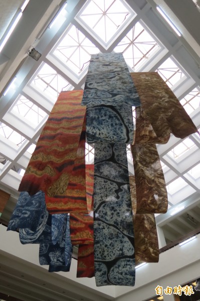 陳景林說,首次製作一件長寬比超過20多倍的巨幅布染作品,構圖思維、染繪造型等創作過程,得克服層層繁複工序困難,事前並需考量空間及環境特性,找出適當懸掛及呈現角度,形成組件作品的集體韻律和立體美感。
