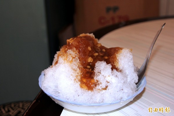 車圓冰灑上綠豆蒜,整碗都是手工製的好味道。(記者陳彥廷攝)