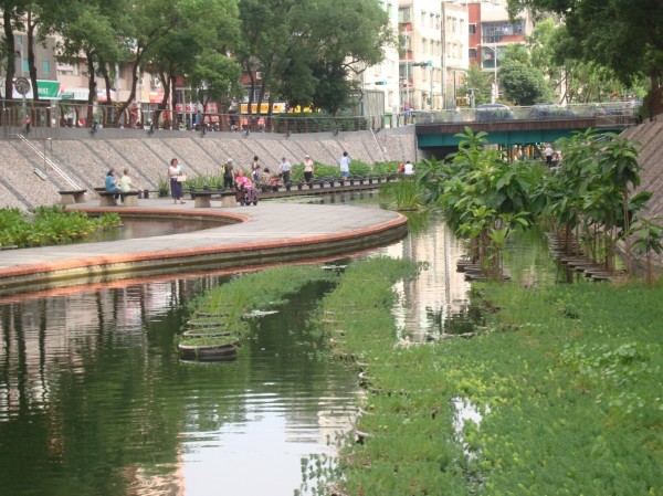 新北市中港大排一百年整治完成後,為城市增加親水空間,被環保署認定是國內都會型河川整治的一個模範。(環保署提供)