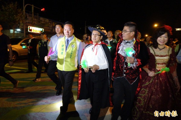 鹿港冬遊季今天熱力揭開序幕,晚上由千人萬聖節大遊行打響第一炮,縣長魏明谷、鎮長黃振彥也變裝參加,全場最特別的是連七爺、八爺都來了,驚豔聲連連,可愛指數破表!