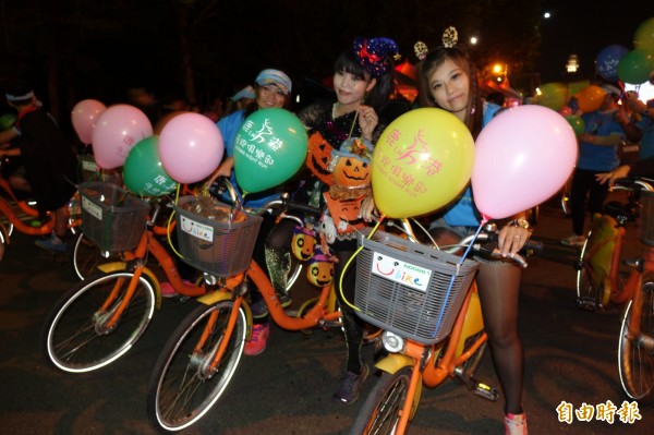 鹿港萬聖節大遊行,自行車隊打頭陣。(記者劉曉欣攝)