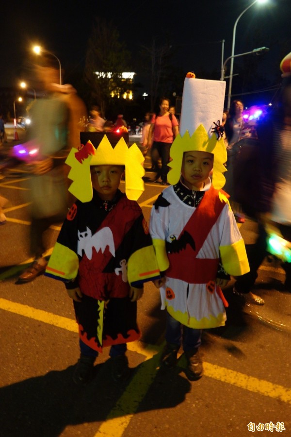 鹿港萬聖節大遊行,七爺八爺讓全場驚豔。(記者劉曉欣攝)