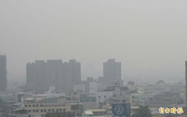 今天是台中市今年空污最嚴重的一天,天空灰濛濛一片。(記者蔡淑媛攝)