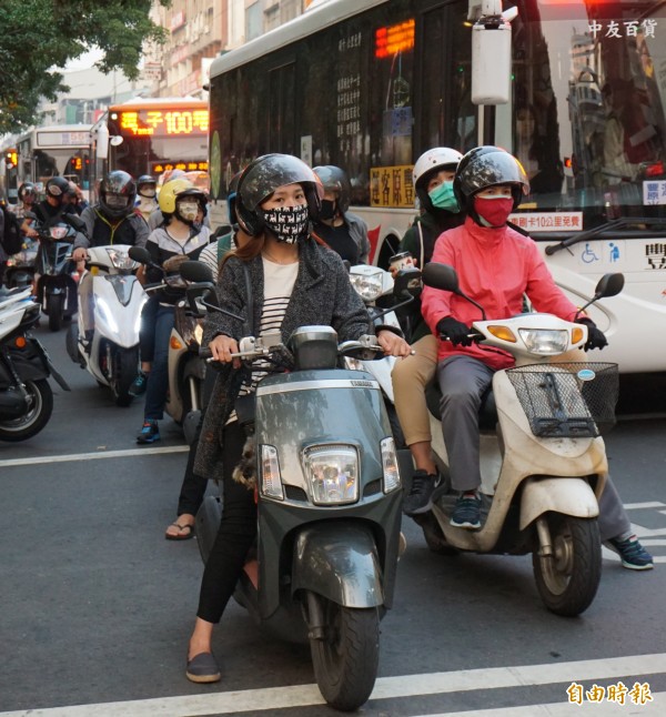 今天是台中市今年以來空污最嚴重的一天,民眾紛紛戴上口罩。(記者蔡淑媛攝)