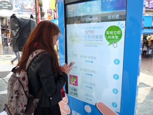 民眾在西門透過Beacon進行智慧購物活動。(資策會提供)