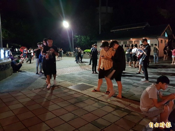 公園抓寶現在最夯,吸引了許多年輕人駐足。(記者葉永騫攝)