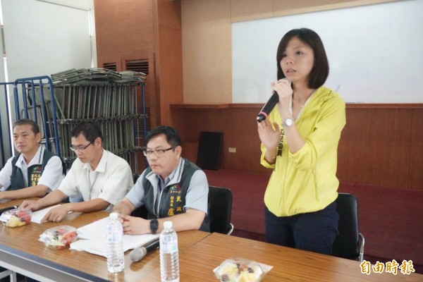 洪慈庸(右一)爭取后里第二納骨塔優惠全區。(記者張軒哲攝)