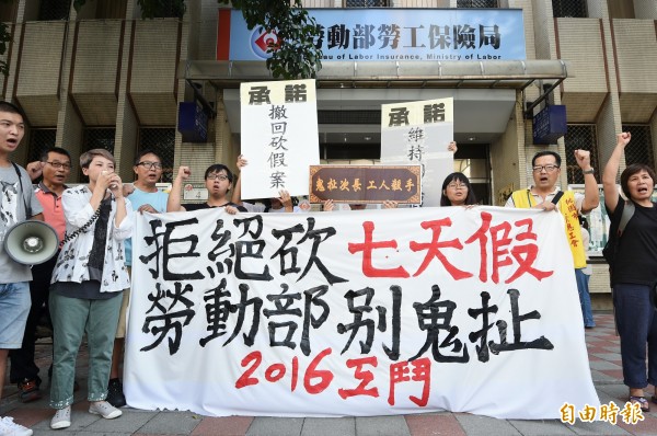 最後工鬥成員高喊「還我7天假」口號集體退席。