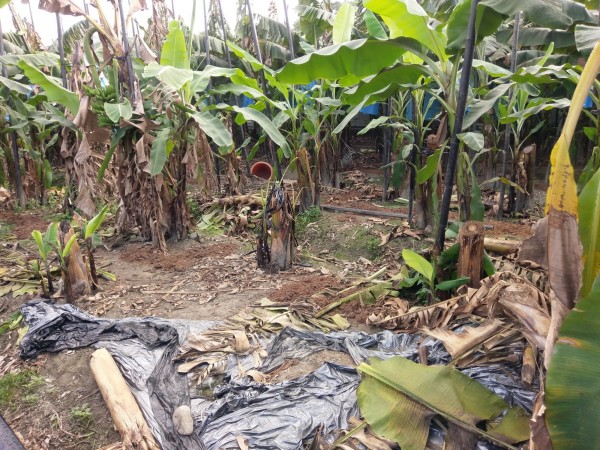 香蕉價格飆漲,盛產香蕉的南投多處蕉園慘遭宵小光顧,園內都是被偷割的痕跡。(記者劉濱銓攝)