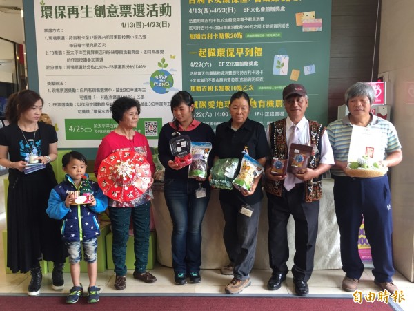 太平洋百貨屏東店課長莊旎瑄也說,環保其實很簡單,小小的創意巧思就可以為地球減碳盡一份心力,該店近來募集民眾利用寶特瓶、廣告紙等可回收材料,DIY製成的生活實用小物,包括鋁箔包購物袋、遮陽帽、寵物窩、面紙盒等,創意作品即日起至4月23日展示於1樓西小門,顧客可透過現場票選或網路票選,支持喜愛的作品,參與投票的顧客將有機會抽中一卡通(含儲值100元)1張或是環保水壺。