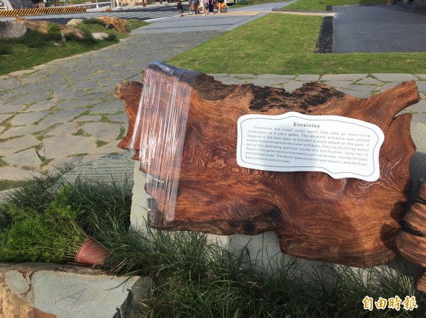 柯市府趕在世大運前為北門廣場剪綵,但被文史學者抓包諸多錯誤,工務局坦言還沒驗收完成,事後會要求廠商修正。(記者張凱翔攝)
