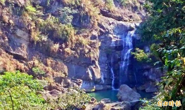 南投縣鹿谷鳳凰谷鳥園中的「隱潭」瀑布,飛瀑自峭壁傾瀉而下,堪稱是夏日避暑的好去處,但如其名,外界鮮知。(記者謝介裕攝)