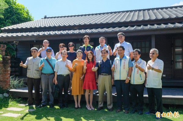 交通部次長祁文中(前排右四)首站參訪竹東鎮的蕭如松藝術園區。(記者蔡孟尚攝)