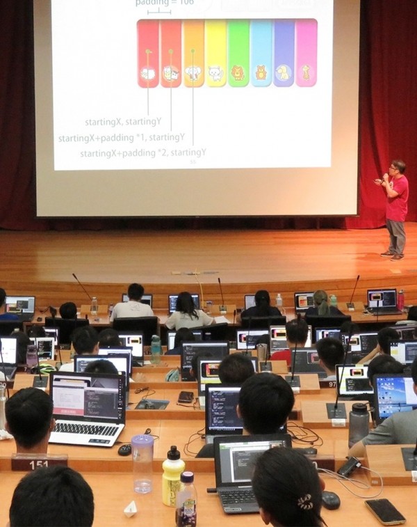 興大「跨平台手機程式與遊戲開發課程」自9月16日起,利用連續3個週末六、日上課,每次6小時,5天共30小時,邀請專職手機App開發者魏巍全程上課,目嘌是讓完全不懂程式的素人新手學生,學會獨立開發手機App,甚至自行上架到App商店的能力。