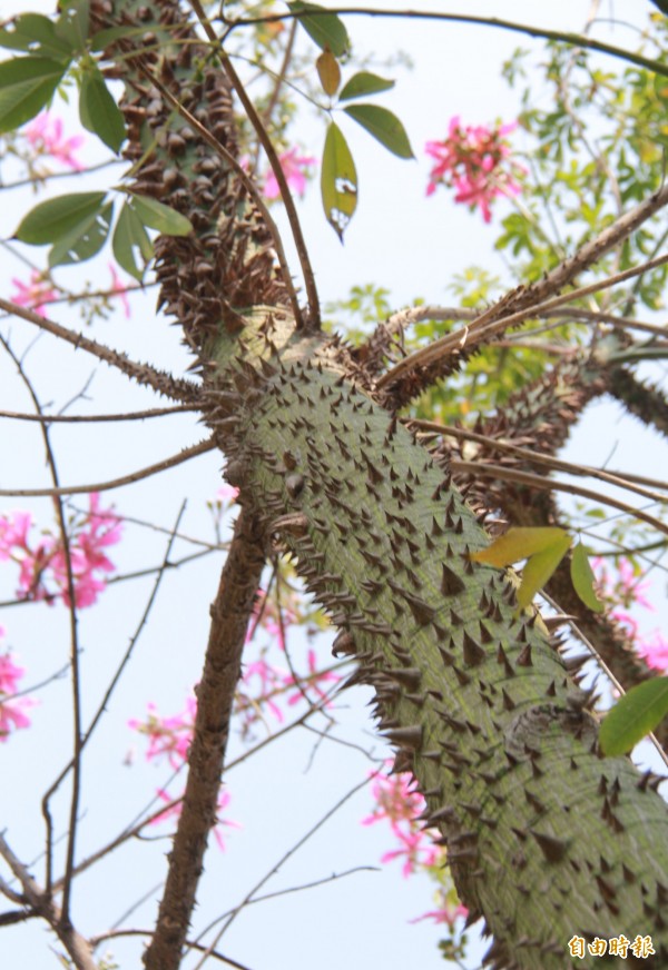 美人樹幹上長滿刺瘤。(記者陳冠備攝)