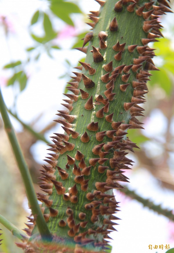 美人樹上布滿刺瘤,猶如狼牙棒。(記者陳冠備攝)