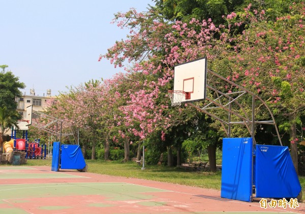 溪湖運動公園旁種植一排美人樹。(記者陳冠備攝)