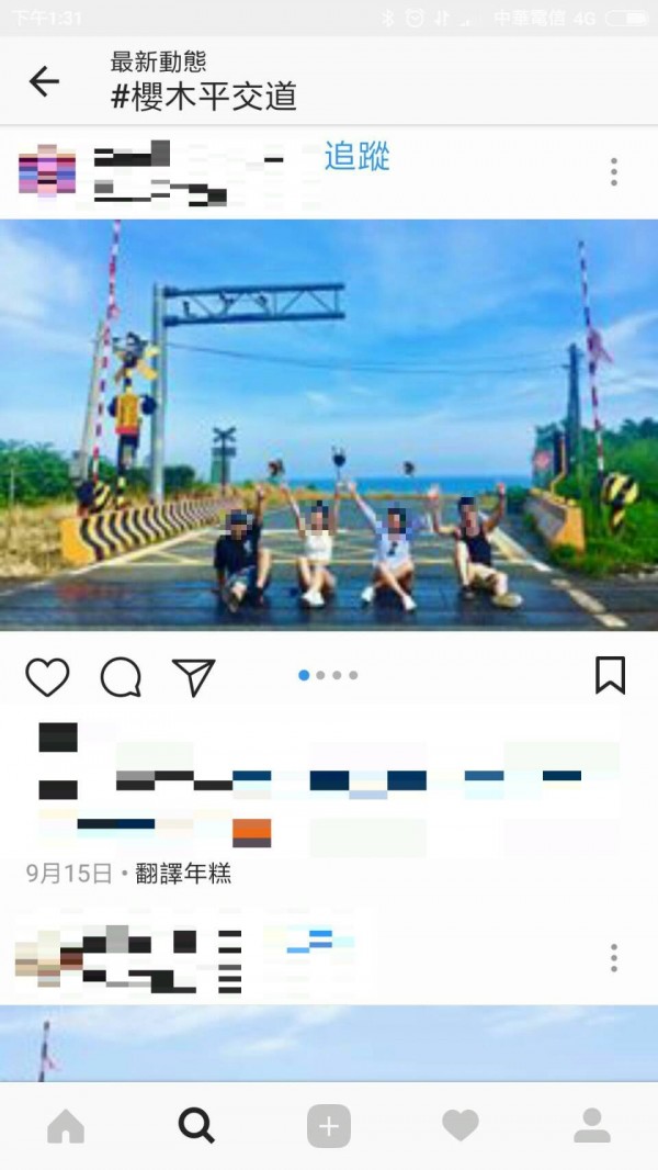 在臉書搜尋櫻木平交道,就能找到遊客坐軌照。(取自網路)