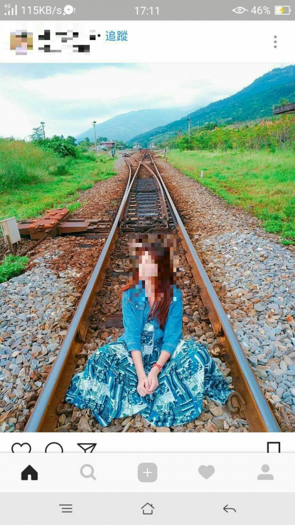 櫻木平交道仍是火車行駛路線,卻有民眾坐軌拍照。(取自網路)