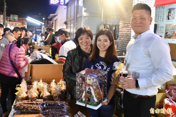 年年在恆春夜市義賣的墾丁凱撒飯店,為了拉抬業績,找來自家飯店女神曾于倢(中)奮力叫賣。(記者蔡宗憲攝)
