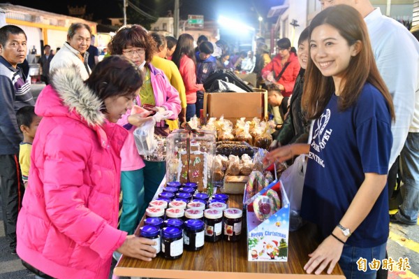 年年在恆春夜市義賣的墾丁凱撒飯店,為了拉抬業績,找來自家飯店女神曾于倢奮力叫賣。(記者蔡宗憲攝)