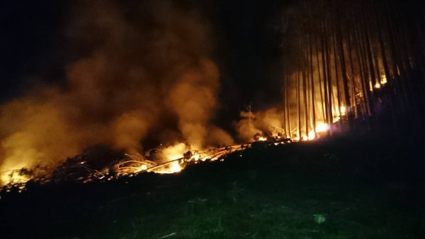 霞喀羅國家步道昨晚發生山林大火,火勢在深夜11點半撲滅。(圖由新竹縣政府消防局提供)
