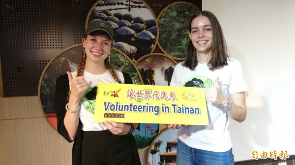 德國籍ICYE志工Theresa(左)及奧地利籍志工Anna(右)鼓勵更多國際志工來台服務。(記者劉婉君攝)