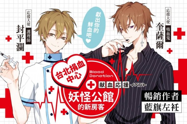 《妖怪公館的新房客》為台灣女性女性輕小說作家「藍旗左衽」筆下作品。(圖擷取自台北捐血中心)