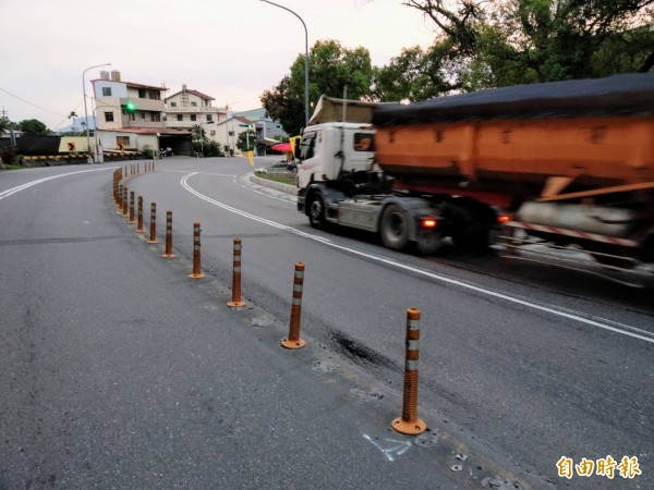 省道台十六線南投縣名間鄉至集集鎮的路段,因砂石車出入頻繁,導致路面出現如波浪般的凹陷與隆起。(記者劉濱銓攝)