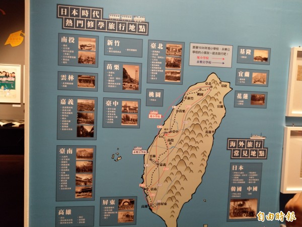 台史博正在展出的「上學去:台灣近代特展」中,也以地圖標示出日治時期2所學校的修業旅行路線,吸引許多參觀民眾駐足,看看自己曾經走訪幾處。
