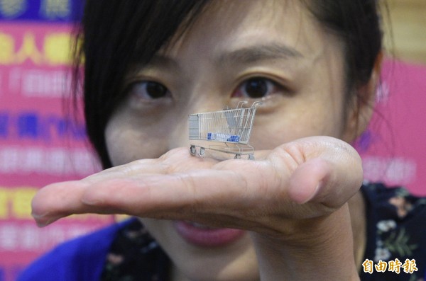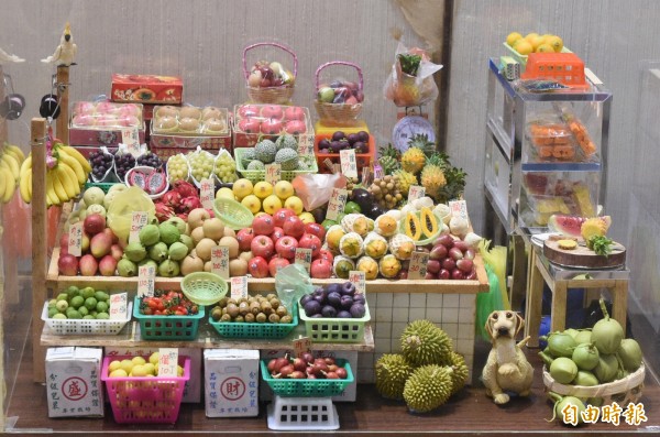 縮小版的水果攤作品栩栩如生,讓人如臨其境感覺。(記者張忠義攝)