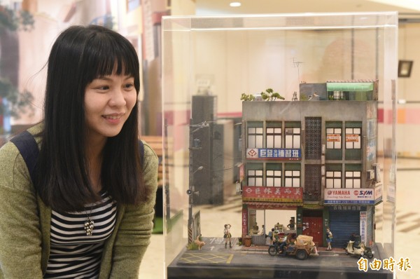 自由人模型工作室的楊玫津,微型作品相當精巧。(記者張忠義攝)