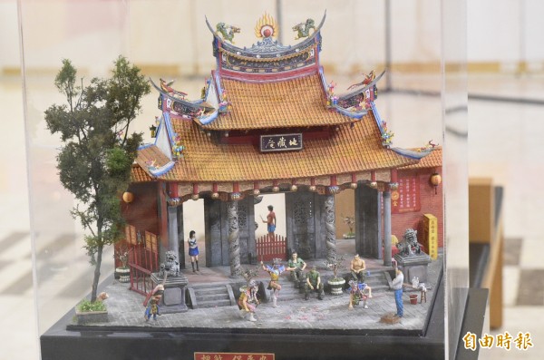 台灣廟寺的作品栩栩如生。(記者張忠義攝)
